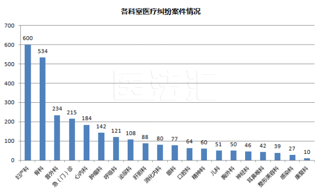 在据以分析的3177件二审案件中,妇产科与骨科仍占据医疗损害责任纠纷案件高发科室的前两位,且数量增长较多。妇产科的医疗损害责任纠纷案件数量高达600件,与2018年相比增长165件,骨科的医疗损害责任纠纷案件数量高达534件,与2018年相比增长113件。急/门诊的医疗损害责任纠纷案件数量增长至215件,跃至医疗损害责任纠纷高发科室的第三位。