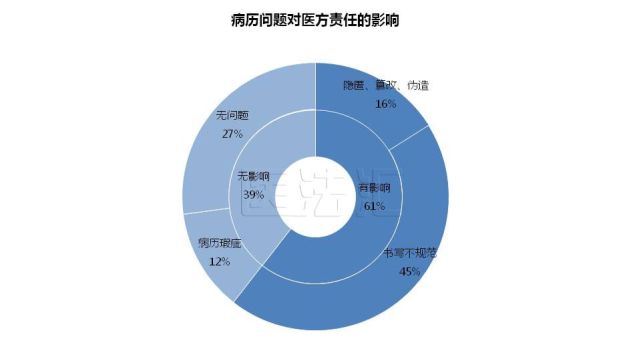 病历书写不规范对医方责任的影响增大。病历问题是医疗损害责任纠纷中的焦点之一,我们将病历问题对医方责任的影响分为两类:有实质性的影响和无实质性的影响。有实质性的影响是指医方的隐匿、篡改、伪造病历行为、病历书写不规范行为影响了法院对医疗机构医疗损害责任比例认定的情形;非实质性影响是指医方病历存在瑕疵但与患者损害后果之间无因果关系、病历瑕疵不足以使法院推定医方过错,或者经医方的合理解释,法院经审理后对患方提出的异议不予采信的情形。